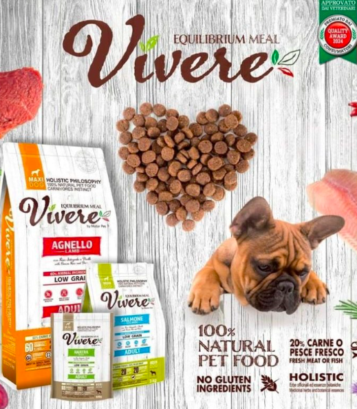 Vivere Dog to karma stworzona z myślą o zdrowiu i zadowoleniu psów. Jej skład oparty jest na wysokiej jakości, naturalnych składnikach, bez dodatku zbóż, aromatów czy konserwantów. Dzięki temu możesz być pewien, że Twoje zwierzę otrzymuje pełnowartościowe posiłki, wspierające jego zdrowie i energię.