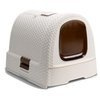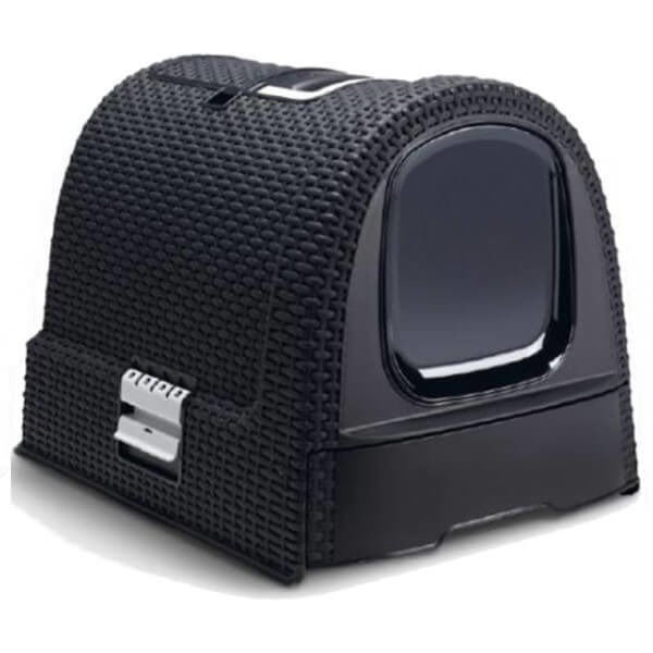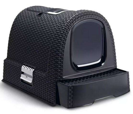 Estetyczna, przypominająca rattanowy kosz kuweta dla kota z wysuwaną szufladą i schowkiem na akcesoria (łopatka i mata czyszcząca łapki w zestawie), niezwykle łatwa w montażu i czyszczeniu. Kuweta posiada szczelne zatrzaski ograniczające wysypywanie się żwirku i filtr przeciwzapachowy, dla zwiększonego komfortu użytkowania. Jej obudowa, wyposażona w uchwyt, jest łatwa do przenoszenia.