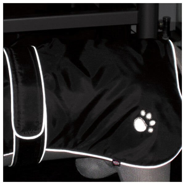 Trixie płaszczyk Orleans dla psów, to modne ubranko z nylonu dla średnich piesków. Sprawi, że podczas zimowych dni, będzie ciepło nawet największemu psiemu zmarzluchowi! Solidnie wykonany uchwyt na smycz zapewnia bezpieczeństwo podczas wyprowadzania pupila na spacer. Ściągacze na tylne łapy zapewniają psu wygodę podczas noszenia. Odblaskowy motyw łapki i paski czynią czworonoga bardziej widocznym po zmroku. Zapięcie w postaci rzepu zapewnia Twojemu psu bardzo dużą swobodę ruchów. Płaszczyk ma podszewkę z miękkiego flauszu. Ubranko można prać w temperaturze 30 stopni.