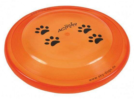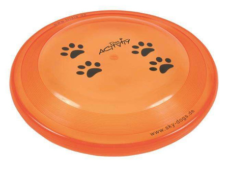 Zabawka dla psa w formie dysku do rzucania, o średnicy 23 cm.