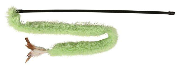 Wędka zakończona jest pluszowym ogonem, na którego końcu umieszczono piórka - dodatkowo zwiększające jej atrakcyjność. Wykonana z nietoksycznego tworzywa.