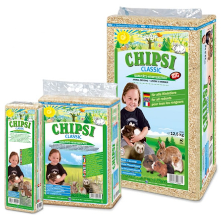 Produkty dla zwierząt firmy CHIPSI zapewniają optymalną czystość i higienę, dzięki latom badań nad roślinną ściółką dla zwierząt. Drewno użyte do produkcji trocin naturalnie jest szczególnie dobre w wiązaniu wilgoci. Drewniana ściółka Chipsi classic to trociny posiadające jedynie naturalny zapach drewna. Jet też jednym z prostych i podstawowych podłoży dla małych ssaków. Bezpyłowe zrębki z drewna iglastego, pochodzące ze świerku i jodły, są naturalnie chłonne, wydzielają przyjemny zapach i zapewniają czyste środowisko.