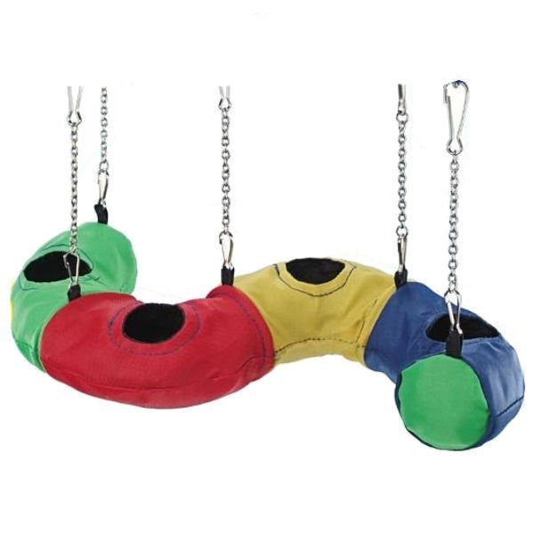 Tunel można w bardzo łatwy i szybki sposób przymocować do góry klatki, tak, aby zwisał.