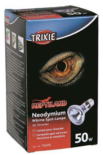 Neodymowe lampy grzewcze emitują fioletową poświatę, która jest skutkiem filtracji szkła z dodatkiem tego metalu. Żarówka skupia ciepło i światło w jednym miejscu, symulując w terrarium słoneczny dzień. Żarówka powinna być używana wraz z innym oświetleniem, aby zapewnić pełen komfort klimatyczny i termiczny. Poprawia samopoczucie zwierzaka oraz wspomaga procesy trawienne i fizjologiczne.