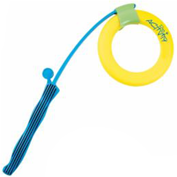 Trixie rzutka z ringiem, to połączenie ręcznej rzutki z gumowym kołem do aportowania. Zabawka przysparza dużo frajdy dla psa i właściciela. Rzutka zapewnia dobry chwyt, co przekłada się na duży zasięg wyrzutu ringo.