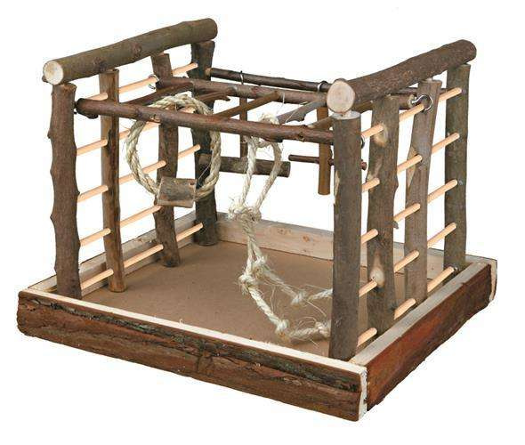 Ptasi plac zabaw Trixie, wykonany z naturalnego drewna, przeznaczony dla mniejszych ptaków, np. kanarków i papużek falistych, lub dla myszy czy chomika. Dużo drabinek, grzędy różnych rozmiarów, a także sznury z węzłami i huśtawki zapewnią ptakom godziny zabawy i niezbędnej aktywności. Plac umieszczany jest na podłodze klatki.