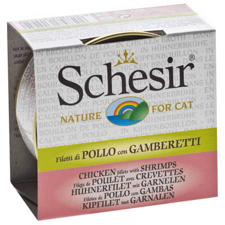 Markę Schesir charakteryzuje użycie 100% naturalnych produktów najwyższej jakości. Karma jest wolna od sztucznych substancji barwiących, smakowych i konserwantów. Duża dbałość o selekcję najlepszych części z ryb i mięs, a także gotowanie na parze i ręczne pakowanie to gwarancja zdrowego pożywienia i perfekcyjnego smaku. Formuła karm Schesir opracowana została z największym naciskiem na zdrowie naszych pupili.
