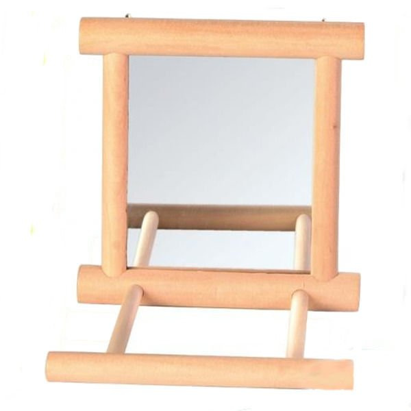 Stylowe lusterko, przeznaczone dla mniejszych ptaków, np. papużek i nimf. Do drewnianej ramki dołączona jest grzęda. Posiada dwa metalowe haczyki, umożliwiające montaż na bocznych kratkach. Stanowią alternatywę dla zaspokojenia potrzeb socjalizacyjnych przy braku towarzysza.