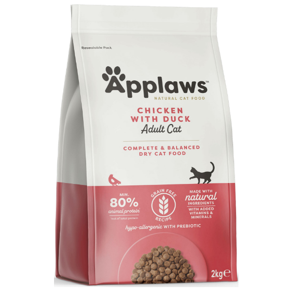 Applaws Chicken and Duck to karma hipoalergiczna przeznaczona dla kotów dorosłych. Zawiera mięso 80% z kurczaka i kaczki oraz warzywa. Żurawina odpowiada za obniżanie ph w układzie moczowym, co zapobiega powstawaniu kamieni nerkowych, a tym samym czyni karmę odpowiednią dla kotów kastrowanych. Ekstrakt z Yucci Schroedingera eliminuje brzydkie zapachy, zarówno z pyszczka, jak i z kuwety. Rozmaryn zaś zawiera dużą ilość aktywnych składników wspomagających system immunologiczny.