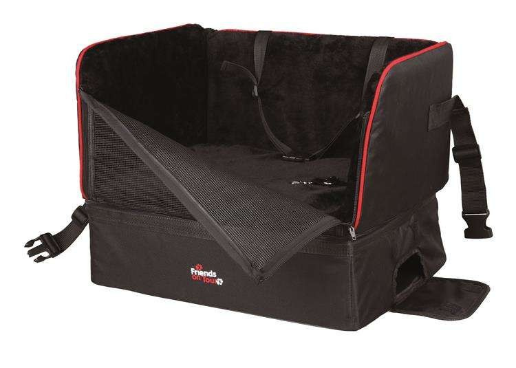 - Podwyższane siedzisko pozwala psu patrzeć przez okno
