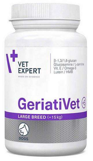 Preparat wspomagajacy dla psów starszych, wymagających specyficznej suplementacji, zmniejszającej ryzyko wystąpienia problemów zdrowotnych związanych z wiekiem.