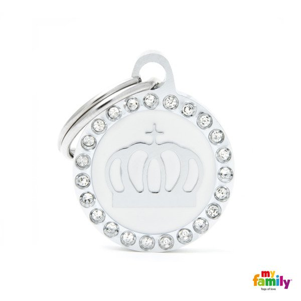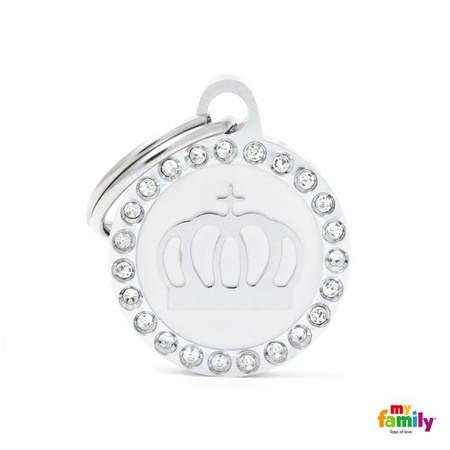 My Family Kółko Korona Biała to adresówka ze stali nierdzewnej dla psa, którą można spersonalizować grawerem.