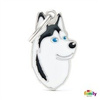 My Family Siberian Husky White Black to adresówka ze stali nierdzewnej dla psa, którą można spersonalizować grawerem.