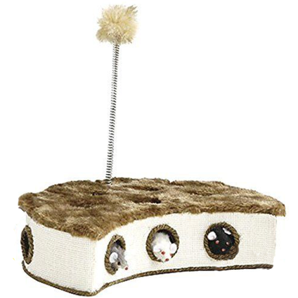 Drapak dla kota Cat Play Box z myszkami i piórami to idealny pomysł aby uchronić meble przed kocimi pazurkami. Kot nauczy się drapać tylko ten drapak, dzięki czemu zacznie ścierać pazury w prawidłowy sposób. Dodatkowo produkt posiada otwory, w które można umieścić myszki dołączone do zestawu. W ten sposób drapak będzie pełnił funkcję zabawki.