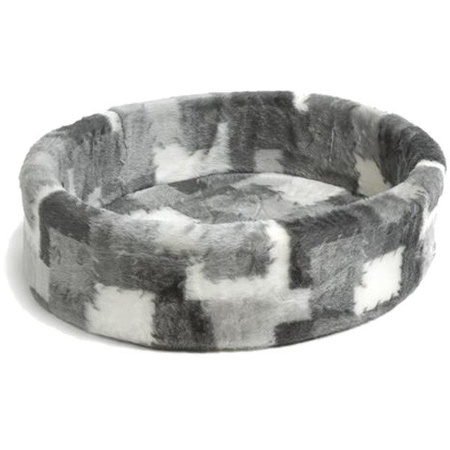 Relax Bed został wykonany z miękkiego, szarego pluszu. Krawędzie legowiska są zrobione ze sztywnej gumy, dzięki czemu ścianki stoją zawsze prosto i nie zapadają się. Można prać w pralce w 30 stopniach.