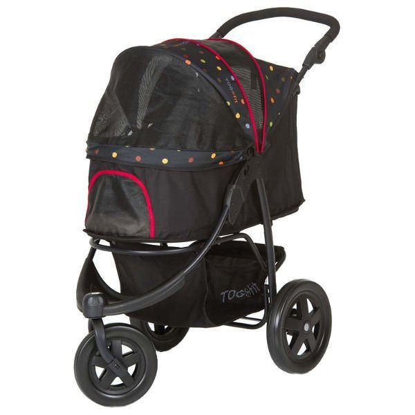 Wózek jest składany, dzięki czemu istnieje możliwość przetransportowania go w dowolne miejsce, a po złożeniu zajmuje go bardzo niewiele. Wózek idealnie można dopasować względem wzrostu osoby prowadzącej - rączka regulowana w przedziale 95-107cm. Pod wózkiem znajduje się koszyk, w którym to możemy przewozić zakupy, smakołyki, bądź zabawki dla psa. Wózek został wykonany z wysokiej jakości materiału, odpornego na wszelakiego typu uszkodzenia. Folia zapewnia optymalną ochronę przed deszczem i wiatrem.