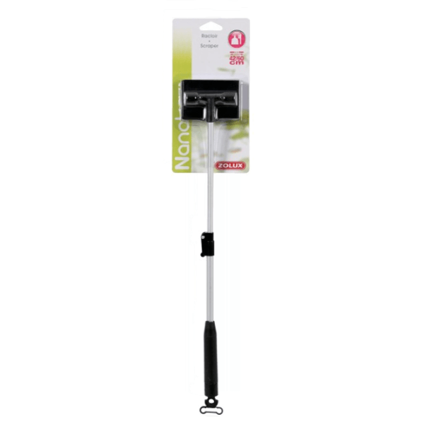 Skrobak teleskopowy Zolux sprawdzi się do czyszczenia każdego akwarium. Dzięki teleskopowej rurce mamy możliwość wyczyszczenia większej powierzchni naszego zbiornika bez konieczności zanurzenia rąk w wodzie. Takie rozwiązanie w znacznym stopniu zmniejsza ryzyko zanieczyszczenia wody w Twoim akwarium.
