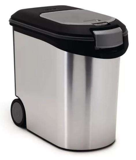 Curver Container  Metallic 12kg to pojemnik na karmę, który pozwala na zachowanie świeżości pokarmu na długi okres czasu. Kółka ułatwiają przenoszenie pojemnika z miejsca na miejsce.