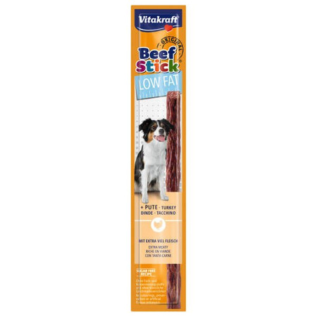Vitakraft Beef Stick kabanos z indykiem dla psa to niskotłuszczowa przekąska mięsna nie zawierająca barwników, konserwantów ani sztucznych dodatków wzmacniających smak i zapach. Smakołyk przyspiesza bicie serca każdego psa! Oryginał wśród paluszków mięsnych przekonuje zarówno dużych, jak i małych czworonożnych przyjaciół - dzięki wyjątkowemu, obfitemu smakowi, absolutnie pysznemu zapachowi i wyjątkowo wysokiej zawartości mięsa. Idealny do rozpieszczania, nagradzania lub po prostu jako psiakąska małego co niego! Szczególnie praktyczne opakowanie otwierane strunowo sprawia, że Beef Stick® Original jest idealny do zabierania go na spacer czy w podróż.