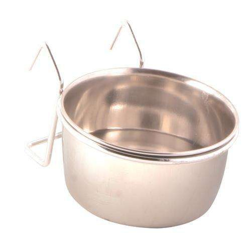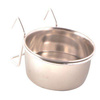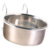 Wykonana ze stali nierdzewnej miska Trixie. Wyposażona jest w praktyczny chromowany wieszak z dwoma zaczepami umożliwiający mocowanie miski wewnątrz klatki. Stabilna i wytrzymała. Może być stosowana dla średnich i dużych papug oraz gryzoni i małych zwierząt. Bardzo przydatna również dla psów i kotów np. podczas wystaw.