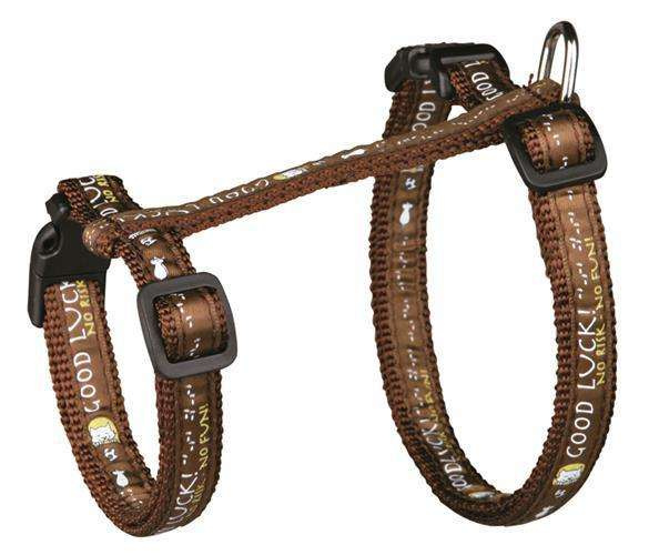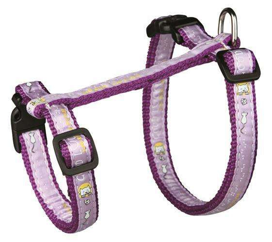 Szelki regulowane Trixie wykonane z nylonu, z motywem, przeznaczone dla dużych kotów. Do zestawu jest dołączona smycz taśmowa w pełni regulowana. Szelki posiadają klamry zatrzaskowe gwarantujące pewne zapięcie.