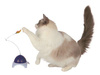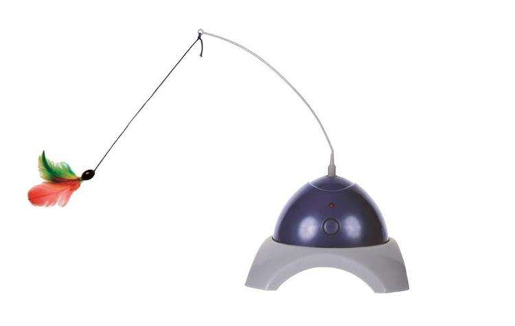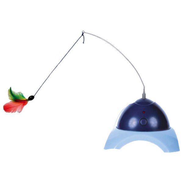 Trixie Catch Me, interaktywna zabawka dla kotów w każdym wieku, od kociaka po seniora. Posiada wewnątrz silniczek, zasilany trzema bateriami "paluszkami". Po uruchomieniu wprawia on wędkę w ruch, która wiruje w losowych kierunkach sprawiając, że piórka zachowują się jak żywe i latają, pobudzając koci instynkt łowny i zachęcając do ich chwytania. Ogromną zaletą zabawki jest jej całkowicie bezgłośna praca - wiele kotów boi się odgłosu pracującego silniczka w tego typu zabawkach, ale Catch Me pracuje całkowicie bezgłośnie. Dobrze skonstruowana obudowa zabawki ogranicza możliwość jej przypadkowego przewrócenia, a nisko umieszczony środek ciężkości dodaje jej stabilności. Brak wystających części silniczka minimalizuje jego ryzyko uszkodzenia, nawet kiedy zabawka zostanie gwałtownie przewrócona przez kota. W komplecie są 2 wędki, dzięki czemu zabawka wystarczy Twojemu pupilowi na wiele godzin szalonej zabawy, a w razie uszkodzenia się jednej wędki - będzie druga. Ogromna zaletą jest pilot, który umożliwia włączanie i wyłączanie zabawki na odległość - dzięki czemu możemy "zaskoczyć" kota nagłym ruchem, kiedy znajduje się w pobliżu, oraz kiedy już się nią nabawi.