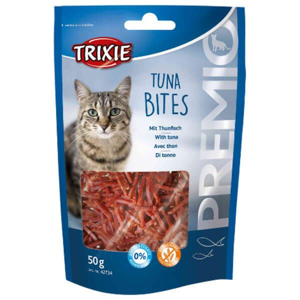 Przysmaki dla kota Premio Tuna Bites charakteryzują się wysoką zawartością tuńczyka (55%), dodatkiem kurczaka (20%) bez dodatku cukru. Smakołyk zakupiony w Megazoologiczny.pl to postać małych paseczków, dzięki czemu są chętnie i łatwo zjadane przez koty. Przekąski Premio Tuna Bites są idealne dla kocich miłośników ryb i drobiu. Długo utrzymują świeżość, dzięki zamykanej torebce.
