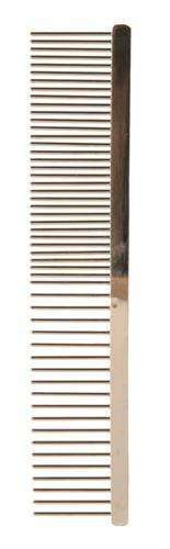 Sierść psów długowłosych lub półdługowłosych powinna być pielęgnowana nie tylko za pomocą szczotki, ale także grzebienia. Szczególnie sierść na uszach, ogonie, podbrzuszu i tylnych nogach ma skłonności do filcowania się i dlatego powinna być regularnie rozczesywana. Zalecane jest rozpoczęcie szczotkowania grzebieniem metalowym Trixie o rzadkich zębach i potem wybranie grzebienia o gęstego. Sierść Twojego psa należy czesać dotąd, aż grzebień będzie swobodnie przez nią przechodził. Może być również używany dla kotów.