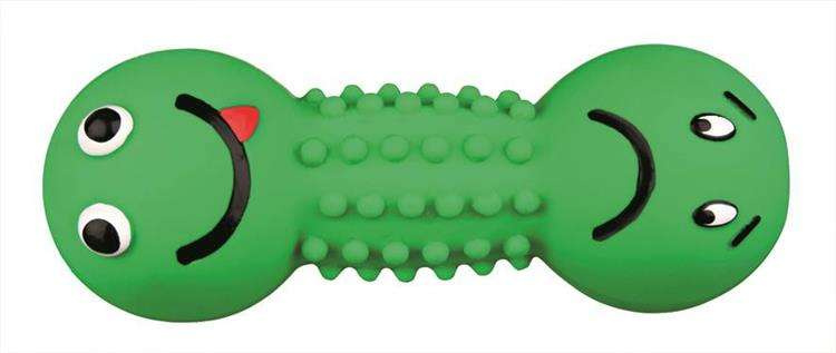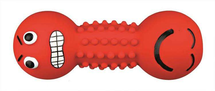 Aport w kształcie hantelka Trixie, mocny i wytrzymały dla Twojego psa. Posiada bezpieczne, zaokrąglone brzegi. Doskonały jako zabawka lub do nauki posłuszeństwa i aportowania. Zabawka wykonana jest z winylu, dzięki czemu jest całkowicie nietoksyczna i bezpieczna dla Twojego psa. Wystające elementy na gryzaku dodatkowo masują dziąsła psa usuwając kamień nazębny. Aport piszczy co jej dodatkową atrakcją, pobudza do zabawy. Elastyczna konstrukcja sprawia, że psu nie może stać się krzywda nawet przy łapaniu zabawki w locie.