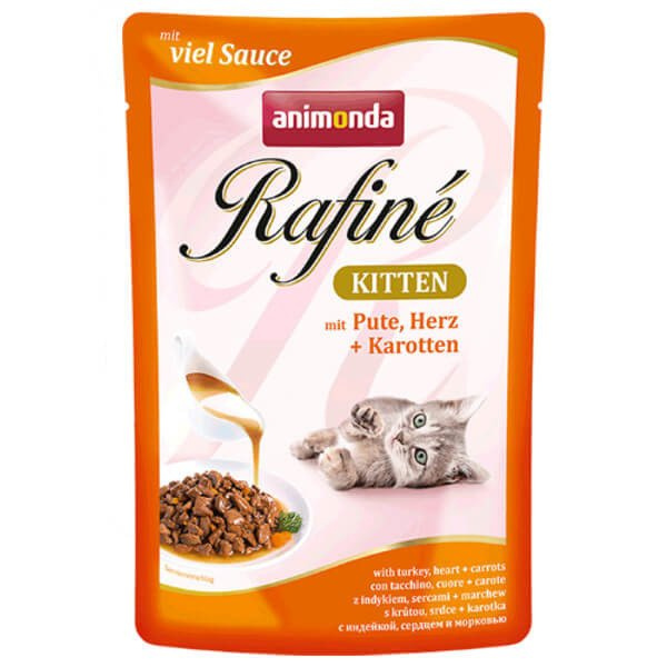 Saszetka Rafine Kitten firmy Animonda to delikatne i pyszne, małe mięsne kawałki z dodatkiem specjalnych składników. Stworzone, aby sprostać wymaganiom żywieniowym kotom, poniżej 12 miesiąca życia. Wyjątkowe danie z indykiem, sercami drobiowymi i marchewką, w wygodnej saszetce "na raz" dla Twojego kota. Karma nie zawiera soi, konserwantów antyutleniaczy.