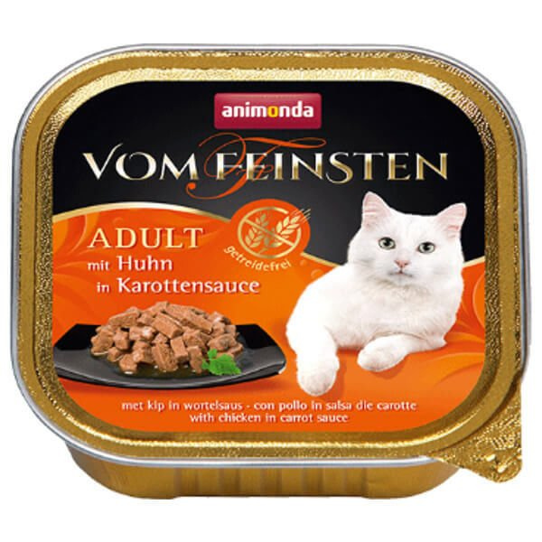 Animonda Vom Feinsten bez zbóż z kurczakiem w sosie marchewkowym. Nawet najbardziej wymagający kot nie oprze się karmie, stworzonej z wyselekcjonowanych gatunków mięsa najwyższej jakości. Dzięki składnikom wysokiej jakości uzyskany został prawdziwy, czysty smak, za którym koty przepadają. To rozkosz podczas każdego posiłku - nie tylko dla wybrednych.