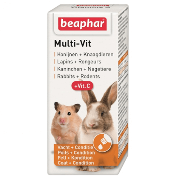 Preparat Beaphar Bogena Multi-Vit + Vit.C dodawany do pożywienia zawierający 12 różnych witamin zapewnia zwierzętom optymalną kondycję, zdrową skórę i błyszczącą sierść. Szczególnie ważna jest dla świnek morskich duża zawartość w preparacie witaminy C.