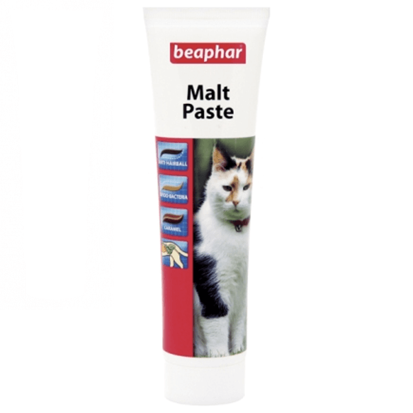 Pasta Beaphar przeciw tworzeniu się złogów sierści w żołądku, mieszanka paszowa uzupełniająca dla kota. Malt Paste ma podwójne działanie: w pierwszej fazie minimalizuje proces kształtowania się zalegającej sierści w zbite formacje, w drugiej gwarantuje właściwy jej przepływ w przewodzie pokarmowym. Działanie: I faza (kolor pasty - ciemny brąz). Składnikiem podstawowym jest znaczna ilość słodu, który spulchnia złogi sierści w żołądku kota i zapobiega gromadzeniu się pilobezoarów w przewodzie pokarmowym. Dodatek karmelu wspomaga działanie słodu i podnosi walory smakowe preparatu. II faza (kolor pasty – jasny brąz). Składnikiem podstawowym jest BIO – MOS. Jest to komponent uzyskiwany z naturalnych drożdży, pobudza wzrost i aktywność pozytywnych bakterii w przewodzie pokarmowym. Zdrowa flora jelitowa u Twojego kota zapewnia: lepsze trawienie, większą odporność organizmu i ogranicza rozwój patogennych bakterii w przewodzie pokarmowym. Malt Paste chroni przed problemami układu pokarmowego i gwarantuje łagodne przemieszczanie się złogów sierści w żołądku i jelitach.