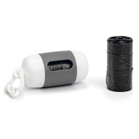 Beeztees plastikowe etui do schowania woreczków na psie odchody, wykonane z wytrzymałego materiału. Etui posiada wygodny plastikowy klips do mocowania na wszystkich rodzajach obroży lub szelek Twojego pupila. Zamykane jest na funkcjonalny zatrzask. Torebka jest lekka i funkcjonalna, w zestawie dwie rolki worków na odchody po 20 w rolce. Teraz już możesz zabierać psa na spacer!