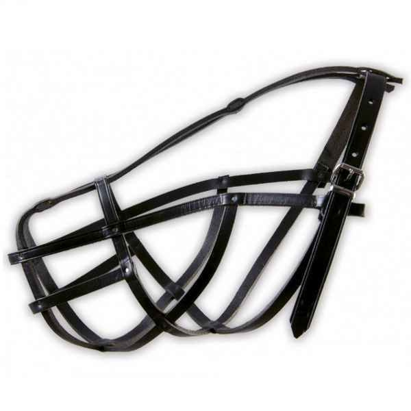 Dino kaganiec skórzany wykonany z wysokiej jakości czarnej skóry, łączonej metalowymi gwoździami. Został specjalnie wyprofilowany, aby być wygodnym dla psa. Nie stwarza problemów w swobodnym oddychaniu. Zapobiega przed gryzieniem i zbieraniem nieczystości.