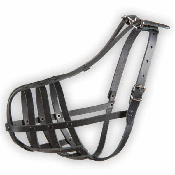 Dino kaganiec skórzany wykonany z wysokiej jakości czarnej skóry, łączonej metalowymi nitami. Został specjalnie wyprofilowany, aby nie obcierać ani nie odparzać psa. Nie stwarza problemów w swobodnym oddychaniu. Zapobiega gryzieniu i zbieraniu nieczystości.