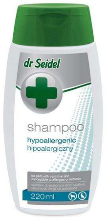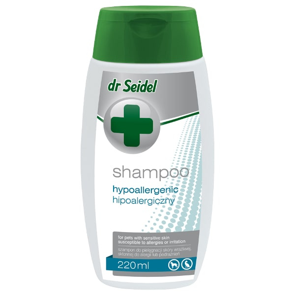 Specjalistyczny skoncentrowany szampon hipoalergiczny dla psa i kota dr Seidel. Do pielęgnacji skóry zwierząt ze skłonnością do częstych alergii i podrażnień. Polecany pod szczególnie wrażliwą skórę. Zawiera wyjątkowo łagodne środki myjące oraz substancje nawilżające i pielęgnacyjne, które odbudowują naturalną barierę ochronną skóry. Ułatwia rozczesywanie, a regularne stosowanie szamponu dr Seidel hipoalergiczny zapobiega wysuszeniu skóry oraz zapewnia włosom naturalną miękkość i połysk. Nie zawiera barwników, substancji zapachowych i parabenów. Można go stosować przy nietolerancji na inne szampony