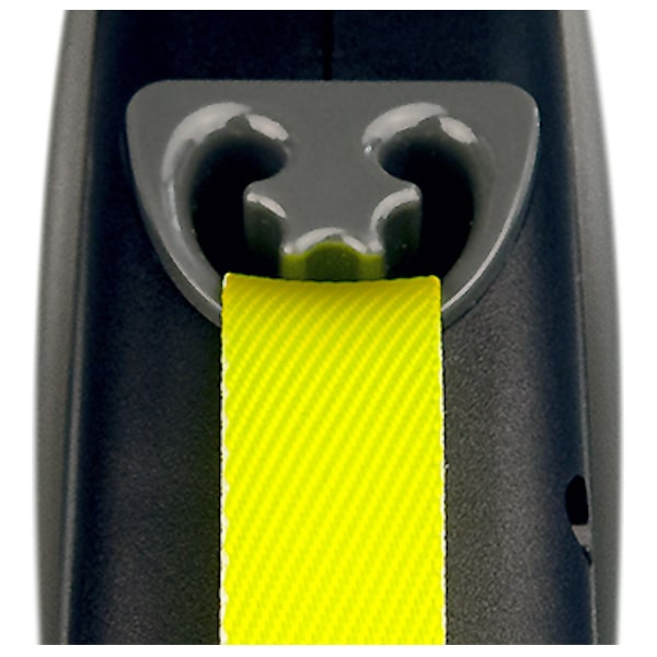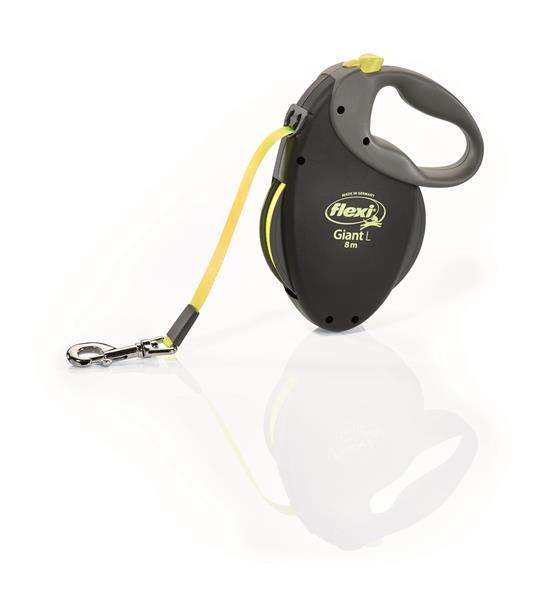 Smycz automatyczna Flexi Giant Neon taśma L 8 m wyposażona jest w odblaskowe elementy takie jak taśma czy przyciski, zwiększa to bezpieczeństwo pupila i opiekuna podczas spacerów o zmroku i w nocy. Rączka smyczy wykonana jest z antyalergicznego materiału uniemożliwiającego wyślizgnięcie z dłoni.