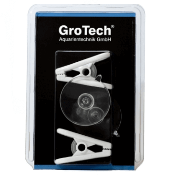 Klipsy do alg GroTech, doskonałe do karmienia pokolców. To praktyczne rozwiązanie ułatwiające karmienie ryb za pomocą alg. Solidnie wykonany element z nietoksycznego tworzywa, który zapewnia dużą jego wytrzymałość, jednocześnie zapewniając rybom idealny dostęp do pokarmu. Klips montowany jest wewnątrz zbiornika z wodą za pomocą solidnej przyssawki. W zestawie znajdują się dwa klipsy i dwie przyssawki.