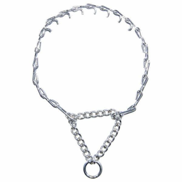 Półkolczatka Dino to niezwykle pomocne narzędzie szkoleniowe w nauce chodzenia, które powinno być używane wyłącznie czasowo, NIE na stałe! Została wykonana z wysokiej jakości stali chromowanej. Posiada mechanizm zapobiegający zbyt mocnemu zaciśnięciu się obroży podczas ciągnięcia. Lekko zaokrąglone, odpowiednio wyprofilowane kolce zapobiegają zranieniu szyi psa.