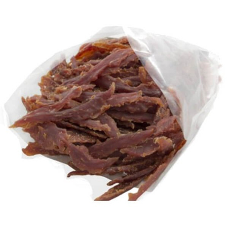Mięsny przysmak dla psów w postaci miękkich pasków z mięsa kaczki. Doskonałe uzupełnienie zbilansowanej diety czworonoga między posiłkami oraz wspaniały sposób na zmotywowanie Twojego psa podczas treningów, zabaw i spacerów. Klasyczny kształt mięsnych kawałków, które bez najmniejszego problemu można podzielić na drobniejsze porcje.