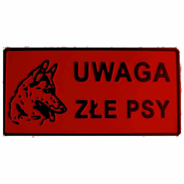 Solidnie wykonana, tłoczona, metalowa tabliczka z napisem "UWAGA ZŁE PSY" w kolorze czerwonym. Do powieszenia na bramie lub furtce. Odporna na warunki atmosferyczne. Wykonywane w technologii tłoczenia aluminium tablice ostrzegawcze ze względu na swoją estetykę i trwałość, a także oryginalny wygląd, są miłym dodatkiem dla Twojego domu czy ogrodzenia. Czcionka dobrana jest w taki sposób, że już z daleka tablica jest bardzo czytelna.