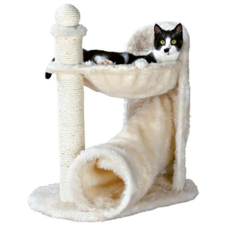 Trixie drapak Gandia z tunelem dedykowany kotom wszystkich ras i rozmiarów. Świetna alternatywa podczas codziennych zabaw dla Twojego pupila. Pełni funkcje nie tylko drapaka do pazurów, ale również legowiska i miejsca do aktywnej zabawy. Składa się z trzech elementów, miękkiego legowiska, pionowego słupa do drapania oraz tunelu. Został wykonany z najwyższej jakości materiałów. Jest niezwykle przyjemny w dotyku. Całość świetnie prezentuje się w nowoczesnym wnętrzu.