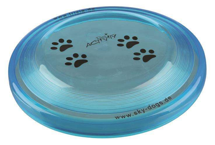 Zabawka dla psa w formie dysku do rzucania, o średnicy 19 cm.