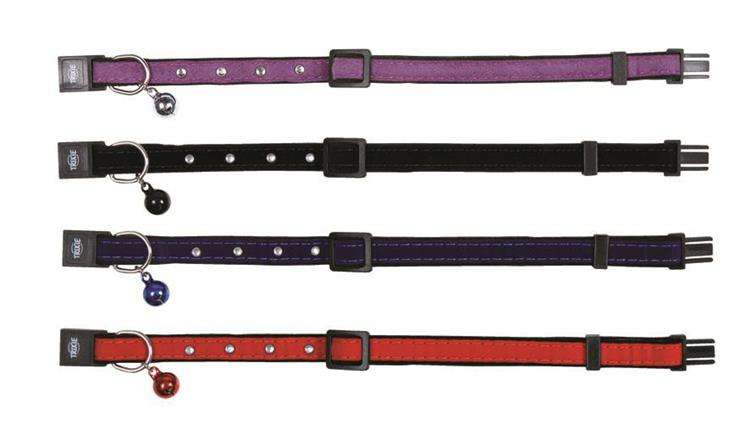 Obroża Trixie dla kota z dzwonkiem, wykonana z wytrzymałego aksamitu, posiada odblaskowe elementy. Idealny produkt na jesienne i wiosenne spacery Twojego kota. Obroża jest w pełni regulowana i bardzo łatwa do zapięcia. Na taśmie umieszczono kryształki górskie, które pozwolą wyróżnić Twojego kota na spacerze z innymi kotami. Przyczepiony dzwonek ułatwiający lokalizowanie pupila poznającego nowe otoczenie.