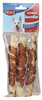 Pałeczki, owinięte mięsem z piersi z kurczaka, wykonane są w 100% z naturalnych produktów. Przysmak nie zawiera cukru oraz glutenu. Produkt z serii Denta Fun pomaga w higienie jamy ustnej oraz zębów, a dzięki gryzieniu ściera kamień nazębny i resztki pokarmu z pomiędzy zębów. Wobec tego zapewnią Twojemu psu zdrowsze i mocniejsze zęby, świeższy oddech, a zarazem zaspokajają jego naturalną potrzebę gryzienia.