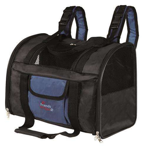 Plecak z serii produktów Trixie "Friends on Tour" - Connor wykonany jest z poliestru. Łączy w sobie plecak i nosidło dla psa lub kota. Otwierany na dwa sposoby: z przodu i z boku, posiada dodatkową kieszenią na przodzie. Ramiączka są w pełni regulowane. W plecaku zamontowano dla bezpieczeństwa psa lub kota krótka smycz, która zapobiega wyskoczeniu zwierzęcia. Nosidełko ma wkładki z siateczki dla dobrej cyrkulacji powietrza. Można je bezpiecznie przewozić w aucie, gdyż posiada specjalne klapy do przymocowania pasami w samochodzie.