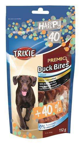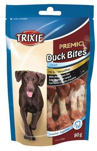 Trixie przekąska PREMIO Duck Bites dla psa z ekstra dużą zawartością mięsa z kaczki na wapiennych kostkach z dużą zawartością protein. Posiada w swoim składzie aż 59% mięsa, dużą zawartością białka. Przysmak pakowany w zamykanej torebce z zipem, by dłużej zachował świeżość. Wysokiej jakości przekąska dla psa, bez cukru i bez glutenu. Chrupkie przysmaki pomagają utrzymać zdrowe uzębienie oraz świeży oddech. Znakomite uzupełnienie psiej diety.