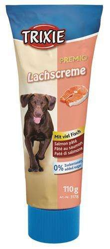 Krem uzupełniający z łososiem, w tubce od firmy Trixie. Ułatwia podawanie leków. Może być stosowany jako nagroda-trenerka, z wygodną formą podawania, bez ryzyka nasycenia żołądka zamiast podstawowego posiłku. Pyszny pasztet z łososia dla psów w praktycznej tubce - łatwe dozowanie bez okruchów.
