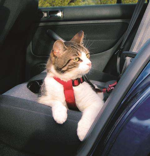 Szelki samochodowe Trixie dla kota, produkt z serii "Friends on Tour". Smycz taśmowa w pełni regulowana. Szelki